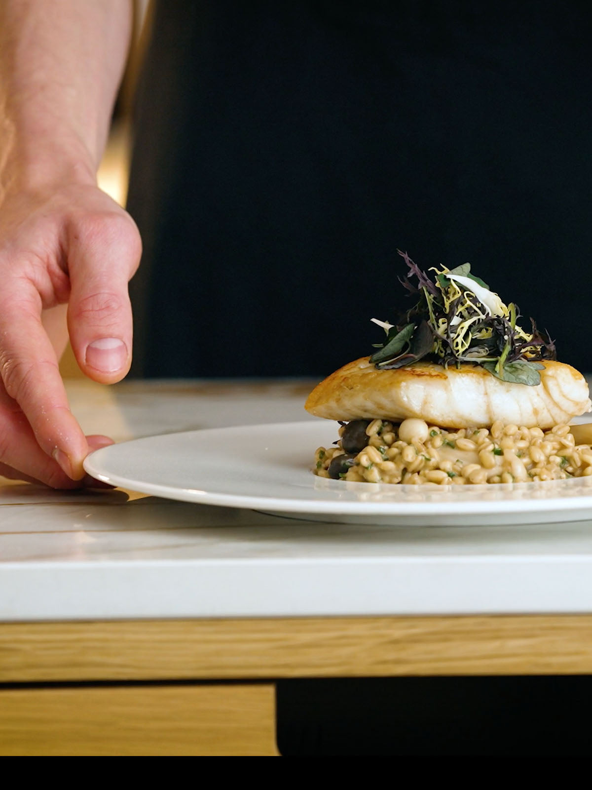 David Haluska, den talentfulde kok og medejer af den anerkendte fiskerestaurant V-HAV, har formået at skabe en ret, der ikke blot vidner om hans kærlighed til havets råvarer, men også hans dygtighed i at forene dem med jordens gaver. Hans signaturret, Svampe Risotto med Smørsteget Mørksej, er en hyldest til de friske, lokale ingredienser, og viser Haluskas evne til at skabe harmoni mellem land og hav.