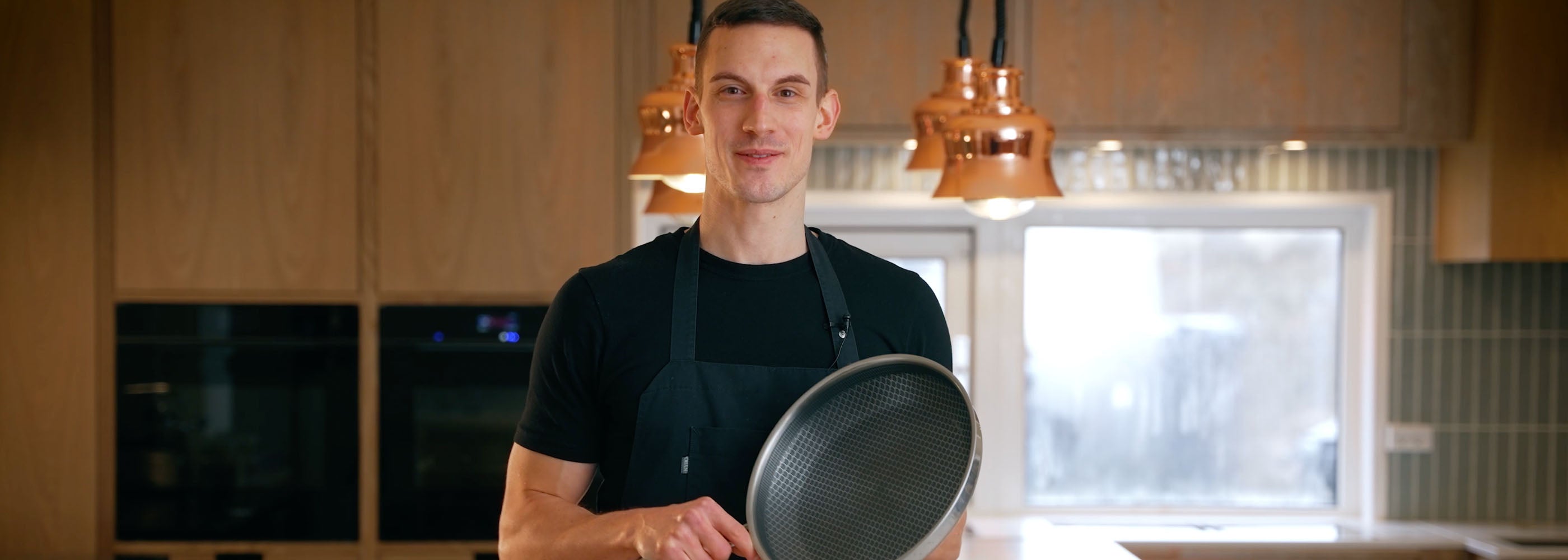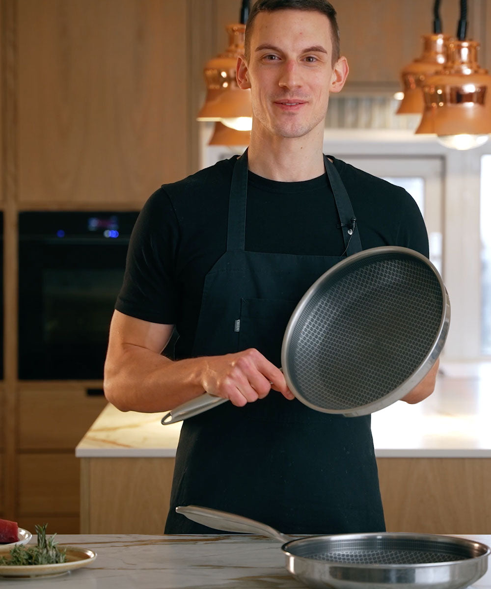 Det trick, der sikrer perfekt stegning af fisken, er at vente, til den slipper panden af sig selv – en proces, der fremskyndes takket være Miso stegepandens egenskaber.