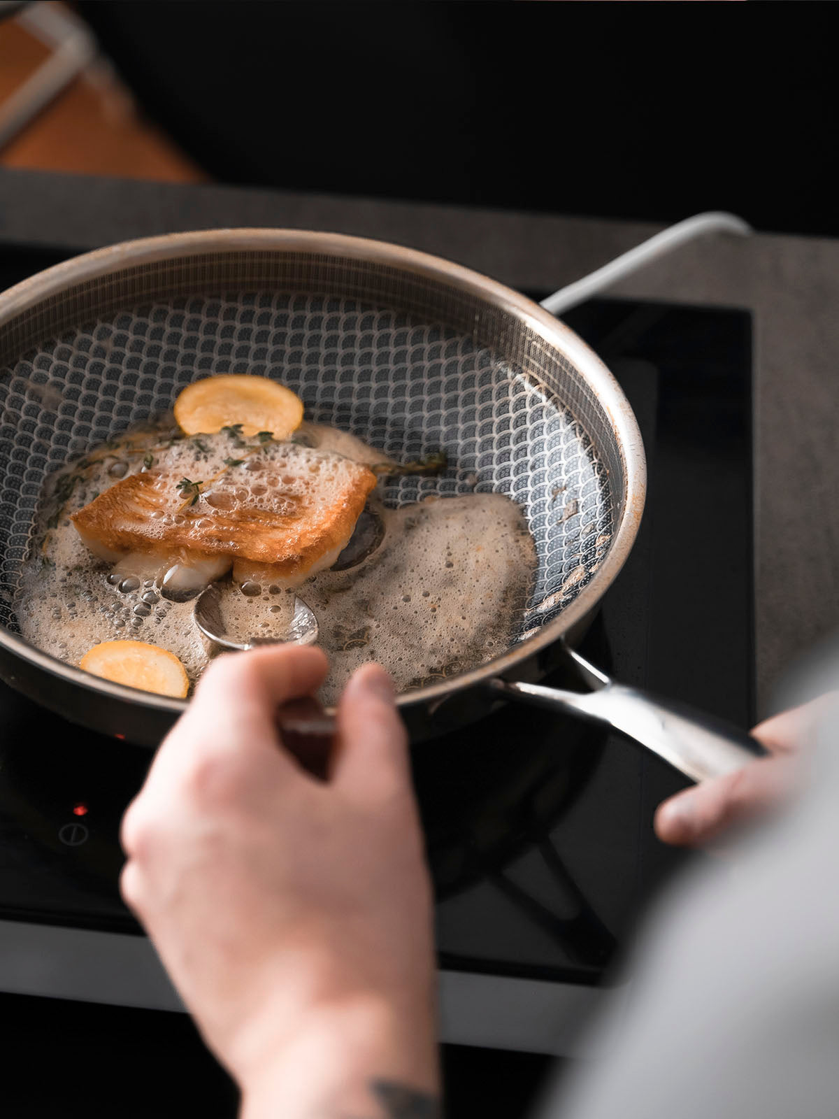 En nøgle til Christians succes er hans brug af den revolutionerende miso stegepande. Denne stegepande, specielt udviklet til at modstå høje temperaturer og garantere maksimal holdbarhed, har vist sig at være et uundværligt redskab i hans gastronomiske arsenal. 100% fri for PFOA og PFAS, og ovnsikker op til 300°C, leverer miso-panden en perfekt stegeskorpe hver gang, hvilket er afgørende for Christians signaturretter. Den tåler også opvaskemaskine, hvilket gør den både praktisk og bæredygtig.