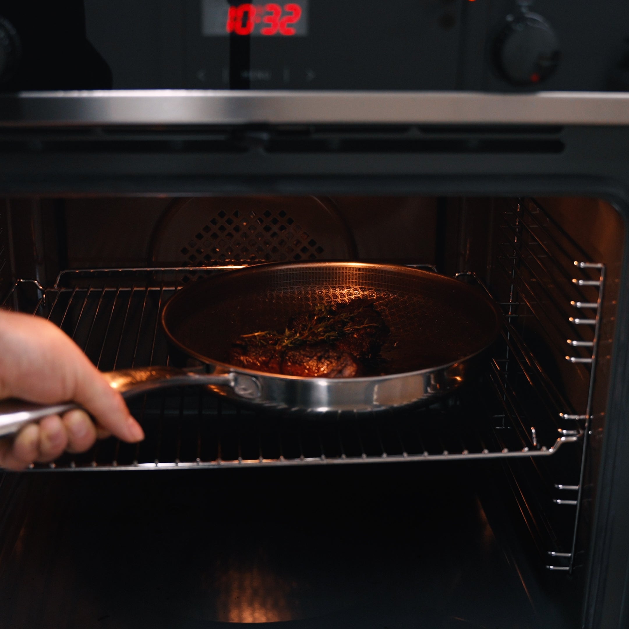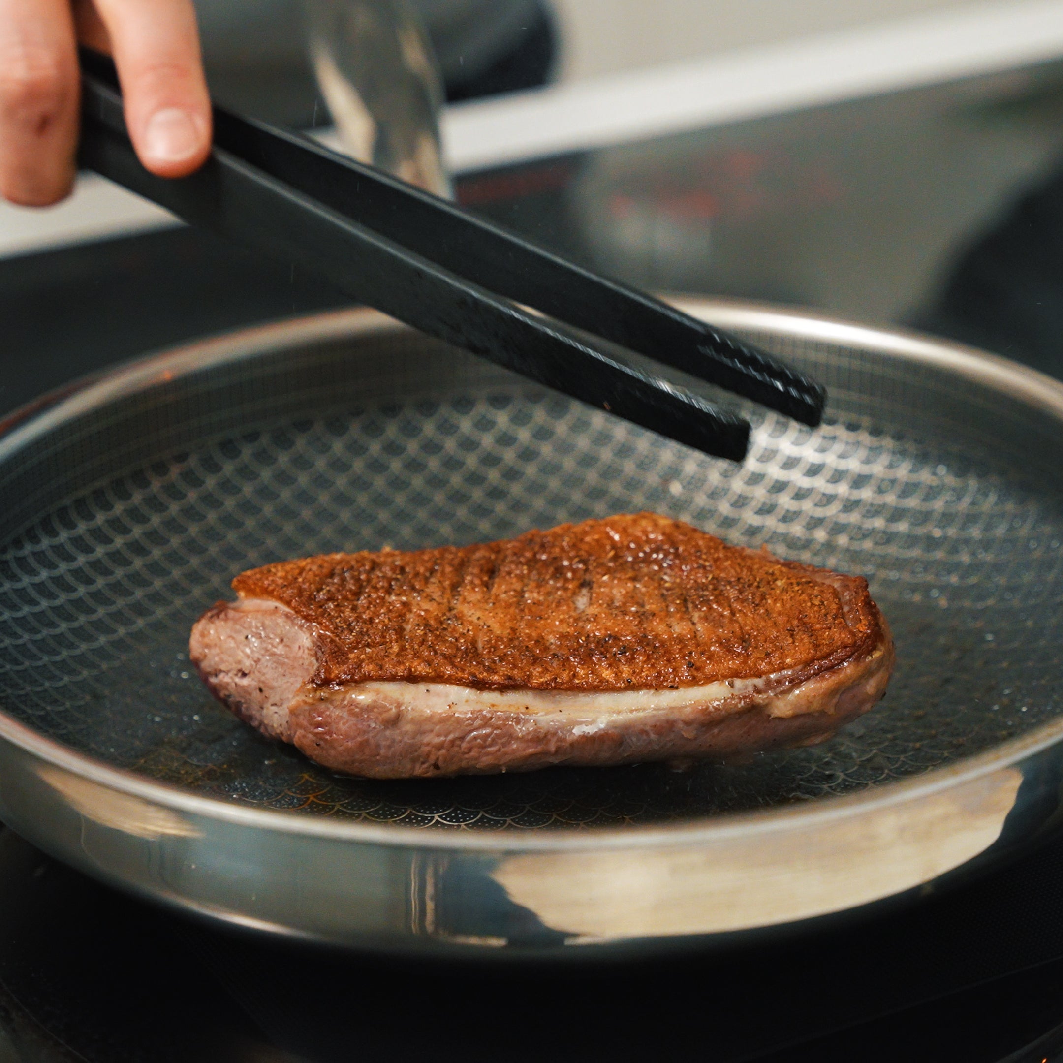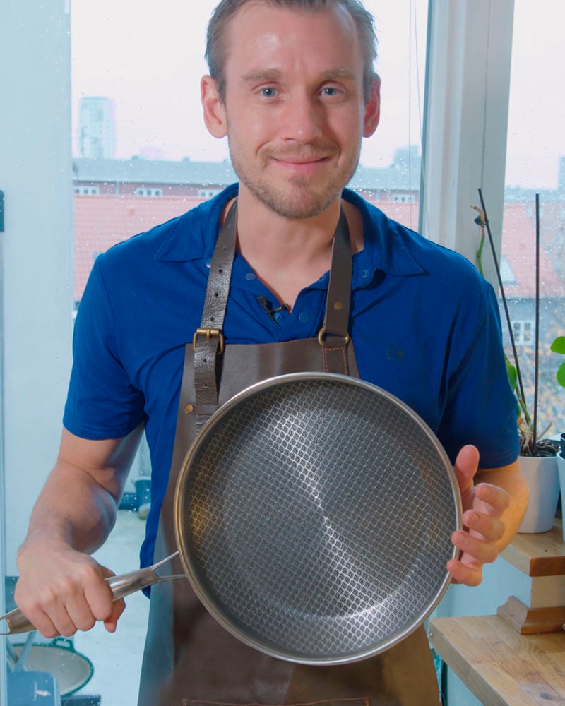 Miso stegepanden er udviklet til at absorbere og fordele varmen hurtigere end din normale stegepande - perfekt til stegning. Vores ganoidnet sikrer derudover optimalt saftflow fra dit kød, så kødet steger, uden at koge. Miso stegepanden er super effektiv til at fordele varmen, hvorfor vi anbefaler, at du laver mad på én grad lavere end du normalt ville.