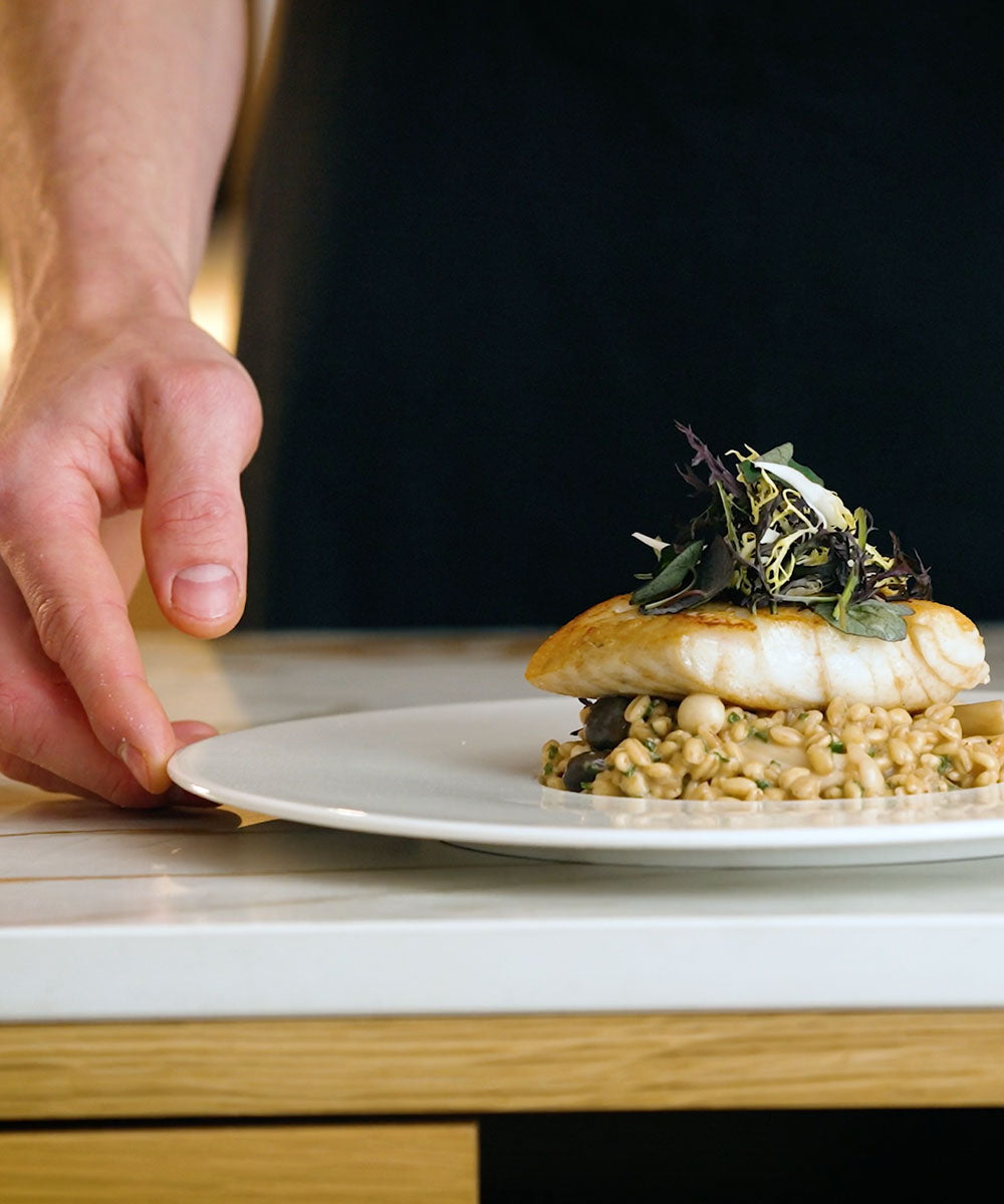 David Haluska, den talentfulde kok og medejer af den anerkendte fiskerestaurant V-HAV, har formået at skabe en ret, der ikke blot vidner om hans kærlighed til havets råvarer, men også hans dygtighed i at forene dem med jordens gaver. Hans signaturret, Svampe Risotto med Smørsteget Mørksej, er en hyldest til de friske, lokale ingredienser, og viser Haluskas evne til at skabe harmoni mellem land og hav.